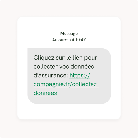 Avant ou pendant une interaction avec un conseiller, l’utilisateur reçoit un lien vers une page web où il peut collecter ses données d’assurance et les partager avec le conseiller.